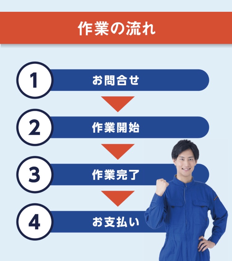 トップページ トラブル一覧 料金案内 作業の流れ 対応エリア よくある質問 会社概要 プライバシーポリシー 相互リンク 選ばれる理由 お客様の声